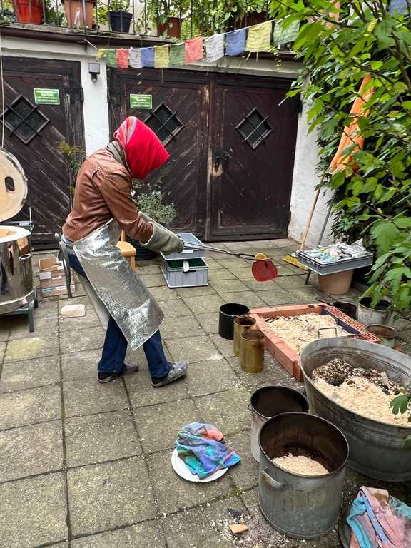 Wir stellen Teeschalen etc. in der japanischen traditionellen Handformtechnik mit speziellem Rakuton her. Diese werden 1 x gebrannt und von euch glasiert. Das spannende Ereignis ist beim dem Brand dabei zu sein. Dabei werden die Stücke im Gasofen auf ca. 1000° gebrannt, glühend aus dem Ofen genommen, mit verschiedenen brennbaren Materialien bedeckt und luftdicht verschlossen. Der sich entwickelnde Kohlenstoff reagieren mit dem Ton und der Glasur. Es werden überraschende Ergebnisse erzielt und es ist ein einzigartiger Event. Mehr Infos zu Raku hier.